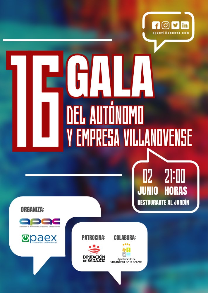Con el objetivo de dar reconocimiento a los autónomos y empresas villanovenses, el 2 de Junio, en el Restaurante Aljardín, tendrá lugar la XVI Gala del Autónomos y Empresa villanovense.