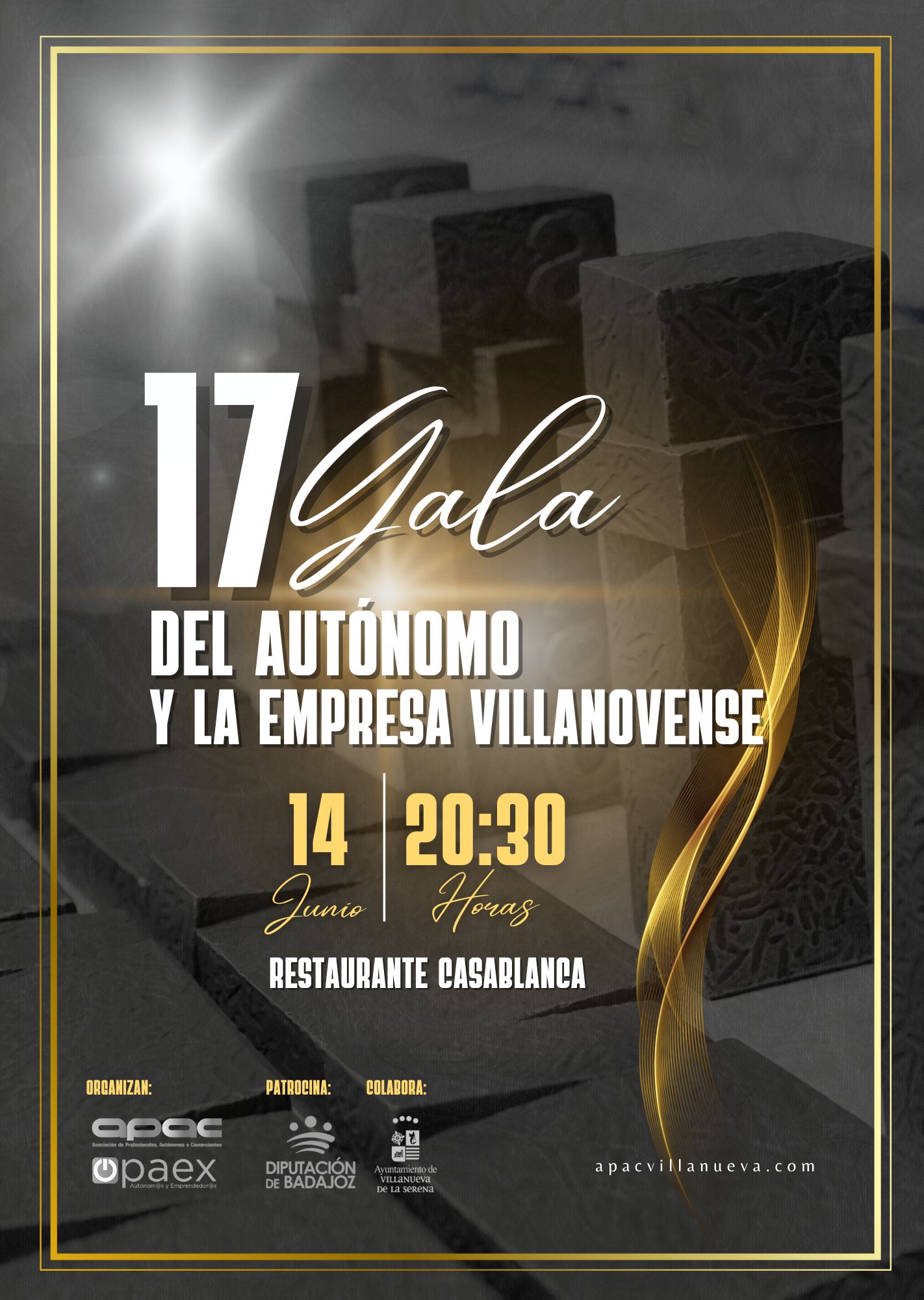 Con el objetivo de dar reconocimiento a los autónomos y empresas villanovenses, el 14 de Junio, en el Restaurante Casablanca, tendrá lugar la XVII Gala del Autónomos y Empresa villanovense.