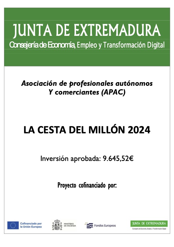 La cesta del Millón es un evento anual que organiza la asociación APAC y su finalidad es promocionar el Comercio y la microempresa de Villanueva de la Serena y sus poblaciones adheridas.